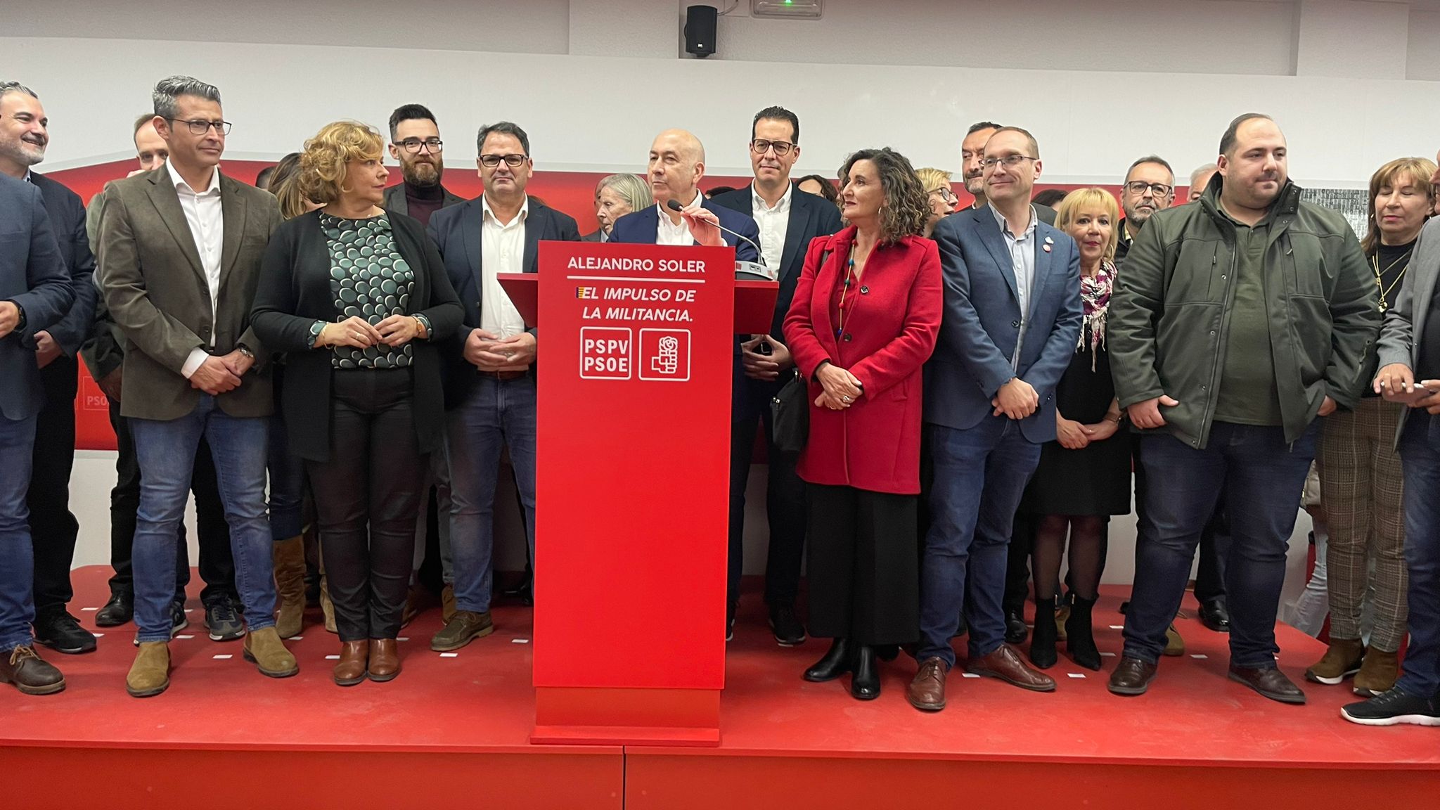 Lo que era una rueda de prensa ha acabado siendo el primer mitin de las primarias socialistas para elegir nuevo secretario general del PSPV-PSOE. Alejandro Soler ha presentado ante los medios de comunicación y respaldado por unos 250 militante socialistas su candidatura: “El impulso de la militancia”. Ese va a ser el eje central de la propuesta del diputado y secretario Provincial dEl PSOE de Alicante que ha estado respaldado por militantes, cargos y alcaldes de las tres provincias.