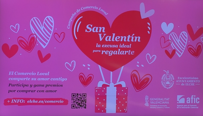 El Ayuntamiento de Elche ha presentado esta mañana la iniciativa por parte de la concejalía de comercio y turismo para San Valentín. La concejala de área, Caridad Martínez, ha explicado que el objetivo de estas propuestas es ayudar al comercio local, que la gente se anime y que ‘haya más alegría’.