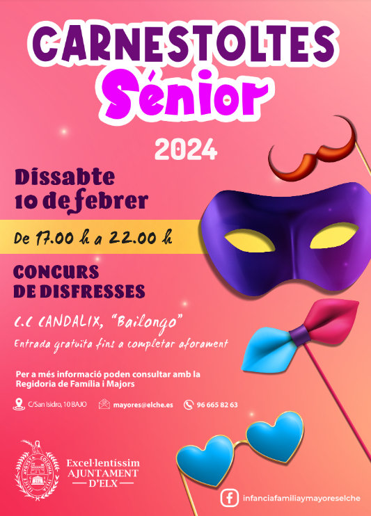 A partir de las 17:00h y hasta las 22:00h, los mayores podrán acudir a la fiesta con sus mejores disfraces y máscaras para disfrutar de la festividad. Cuando el Bailongo abra sus puertas, todo aquel que lo desee podrá entrar en el recinto de manera totalmente gratuita, hasta completar el aforo.