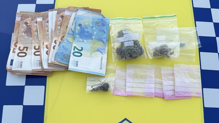 Los agentes procedieron a identificar a los ocupantes cuando observaron que uno de los hombres llevaba una bandolera que levantaba sospechas. Al registrarla encontraron en su interior sustancias estupefacientes fraccionadas en pequeñas bolsas de lo que parecía ser marihuana, anfetamina, éxtasis y cocaína, además de media pastilla de viagra. Junto con las drogas llevaba más de 700 euros en billetes.