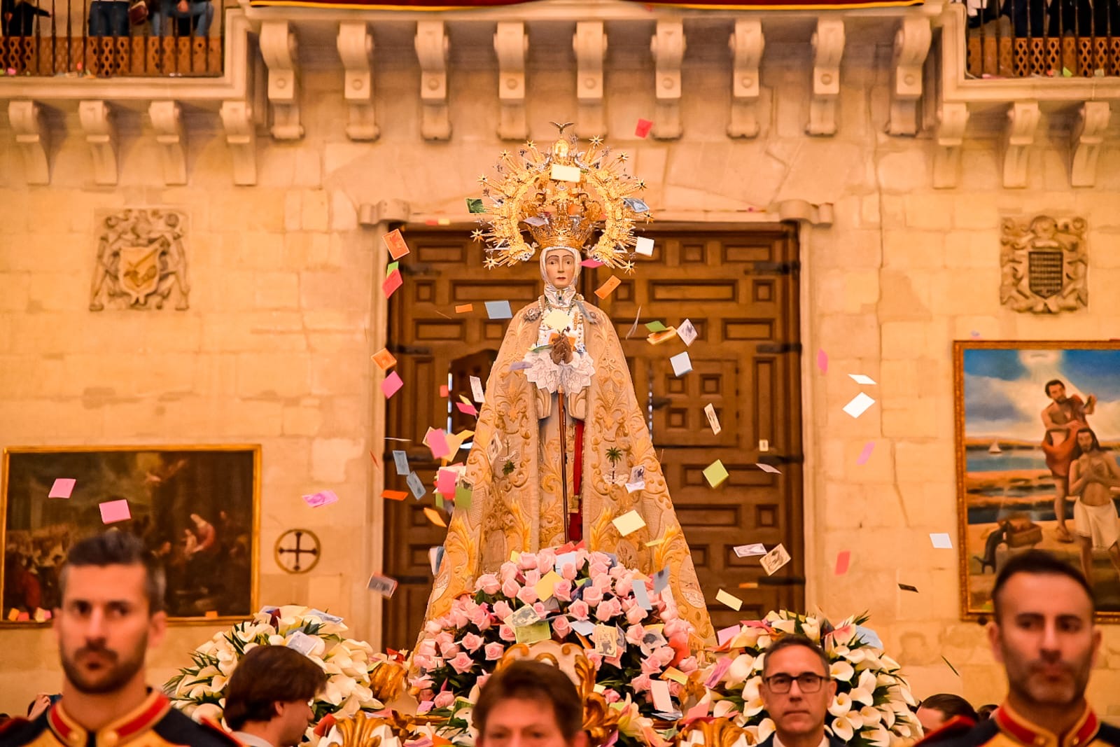 Elche ha despedido la Semana Santa de 2024 con el encuentro entre el Cristo Resucitado y la patrona de la ciudad, la Virgen de la Asunción, con motivo del tradicional Domingo de Resurrección, que este año se ha celebrado en el interior de la basílica de Santa María debido a la lluvia que ha marcado de manera significativa esta Semana de Pasión.