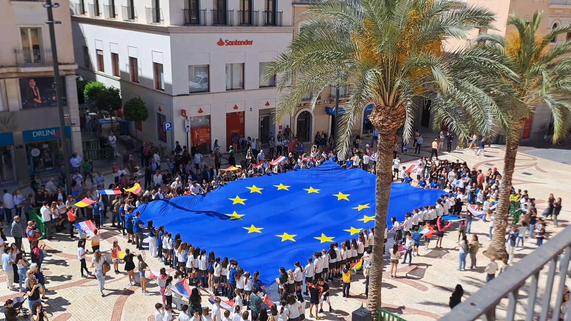 El acto institucional ha continuado con la interpretación en flauta dulce, del Himno de la Alegría, por parte de los estudiantes del colegio Candalix y ha concluido con el despliegue de la bandera de Europa y de los 27 estados miembro de la Unión Europea en la Plaza de Baix. Para finalizar, el Himno de la Alegría ha vuelto a sonar, esta vez por parte del grupo de rock del IES Sixto Marco.