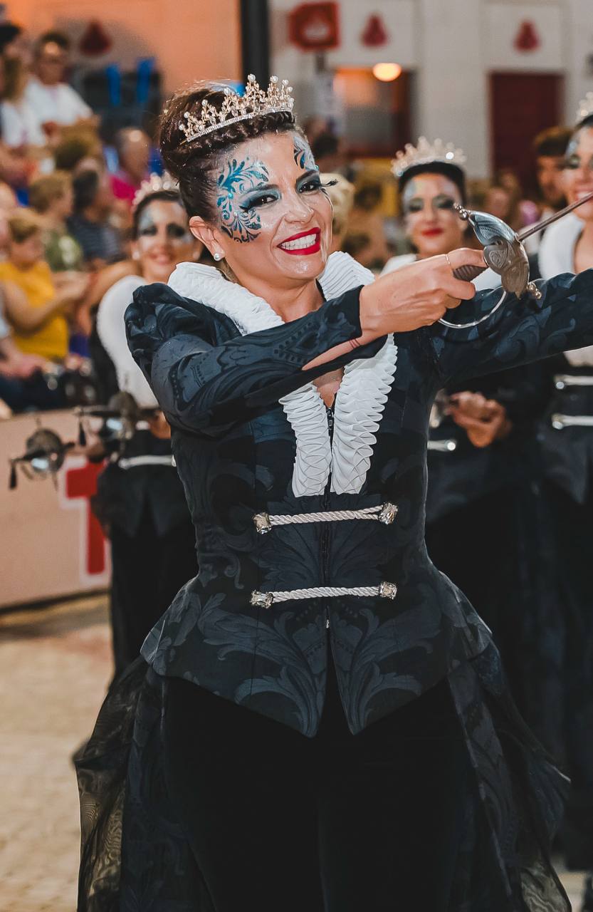 Se trata de Cristina Mora Rodríguez. Su andadura festera se inicia en 1999 en las Huestes del Califa con la capitanía de Julián Fernández Candela y Asún Maciá como Capitán Moro y Gran Favorita participando en la filá especial de la Gran Favorita.