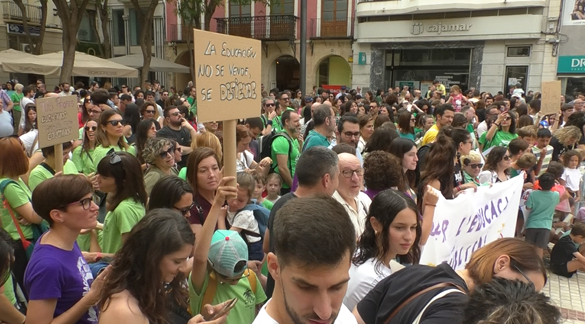 En esta manifestación se ha concentrado la Plataforma por la Enseñanza Pública, profesores, alumnos y grupos políticos para pedir una bajada en las ratios de las aulas, mejorar las condiciones laborales del profesorado, recursos necesarios para una “verdadera” educación inclusiva, decir no al distrito único o denunciar el cierre de aulas de infantil y primaria.