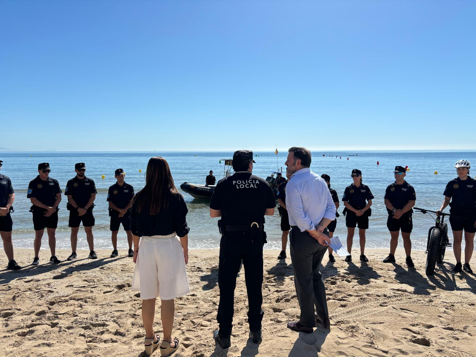 Se incrementa la presencia policial, prevenir actos incivicos incendios, asistir. Esa presencia ha reducido en un 50% los episodios de incivismo o hurtos. Su presencia garantiza estado de las aguas. 46 agentes poli local seis mov urban 9 a 19 h hasta el 19 sept.