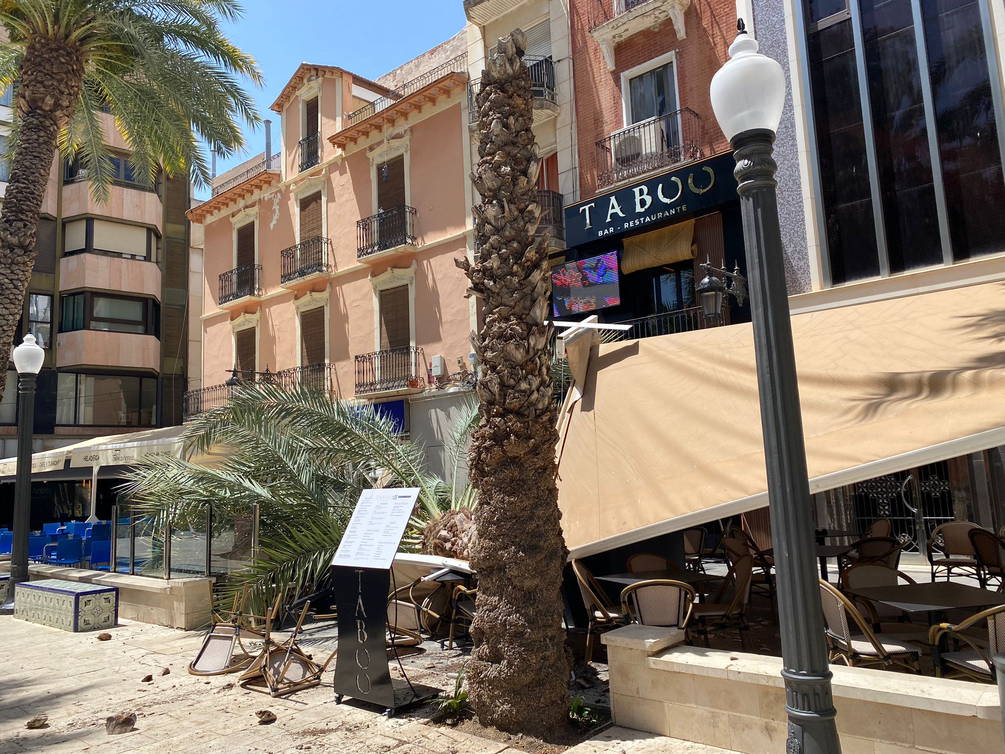Cae una palmera sobre la terraza de un restaurante de la Glorieta
