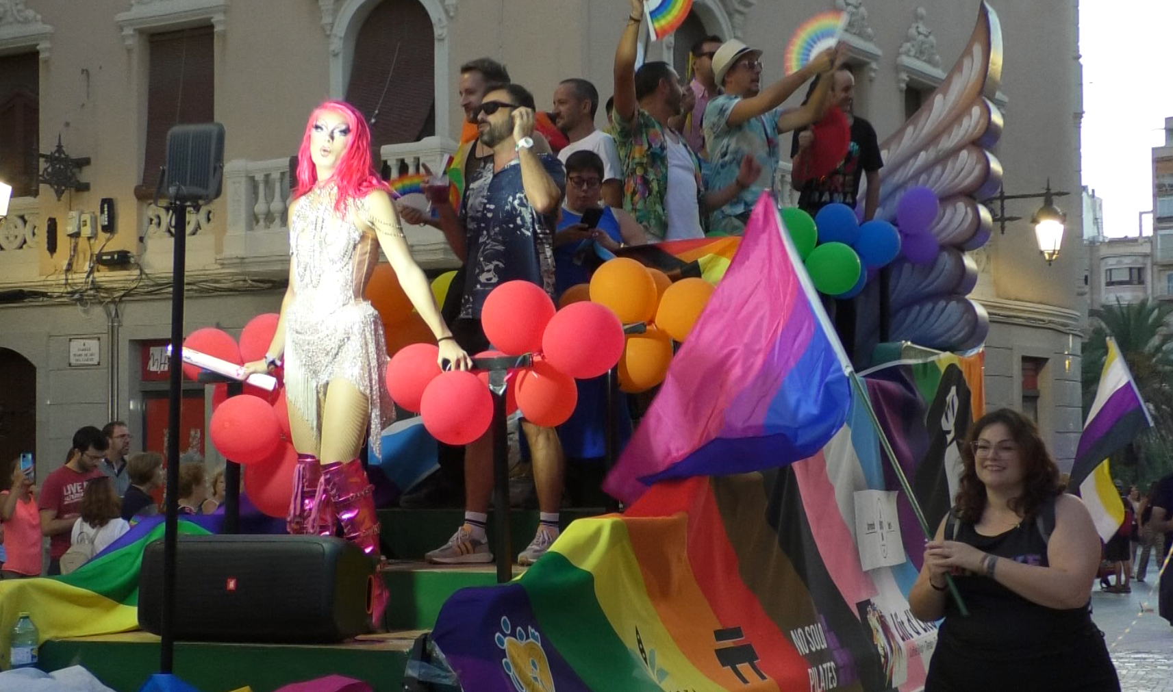 El pasado sábado una vez más se celebró en Elche la manifestación del Orgullo organizado por las asociaciones Dimove y Temis. A las 18:30h se concentraron en la Plaza de las Chimeneas, a las a las 19 horas empezaba el recorrido y llegó a las 20:30 al Paseo de la Estación. A su llegada a la Plaça de Baix se realizó un pequeño parón debido a una actuación que se estaba llevando a cabo al mismo tiempo por las actividades de ‘Elx al carrer’.