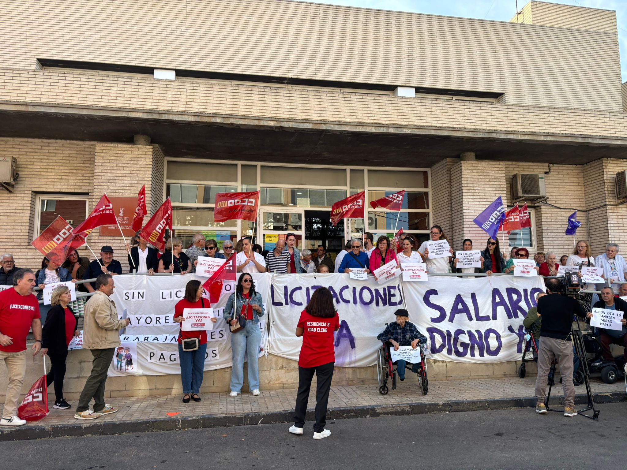 Familiares, empleados, usuarios y usuarias de los centros de gestión integral de personas mayores de Elche se han concentrado a las puertas del geríatrico de Altabix para exigir a la Conselleria de Servicios Sociales que saque a licitación el servicio de la gestión de las residencias que en algunos casos llevan caducadas desde hace varios años. En este sentido, el presidente del Comité de Centros de Tercera Edad de Elche, Juan Pedro Andreu, ha recordado que es una condición “indispensable” para que se pueda aplicar el nuevo convenio laboral que se firmó con el anterior govern del Botànic que el actual ejecutivo de Partido Popular y Vox todavía no han activado.