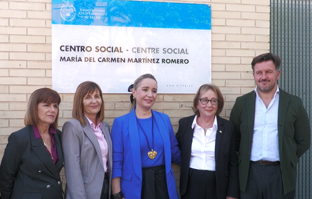 El Ayuntamiento de Elche ha cambiado el nombre del Centro Social de Palmerales por el de María del Carmen Martínez Romero, en honor a su implicación, trayectoria y labor en el barrio de Palmerales durante los últimos 40 años.