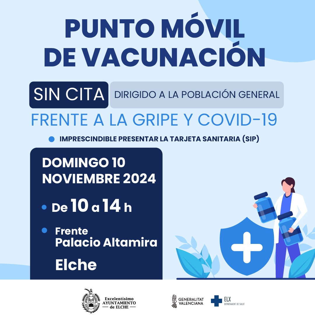 Este domingo 10 de noviembre se habilitará de 10 a 14 horas un punto móvil de vacunación de gripe y Covid en el Paseo de Jaca, frente al Palacio de Altamira. Cualquier grupo de edad puede acercarse,y tampoco será necesaria cita previa, unicamente se deberá llevar la tarjeta sanitaria.