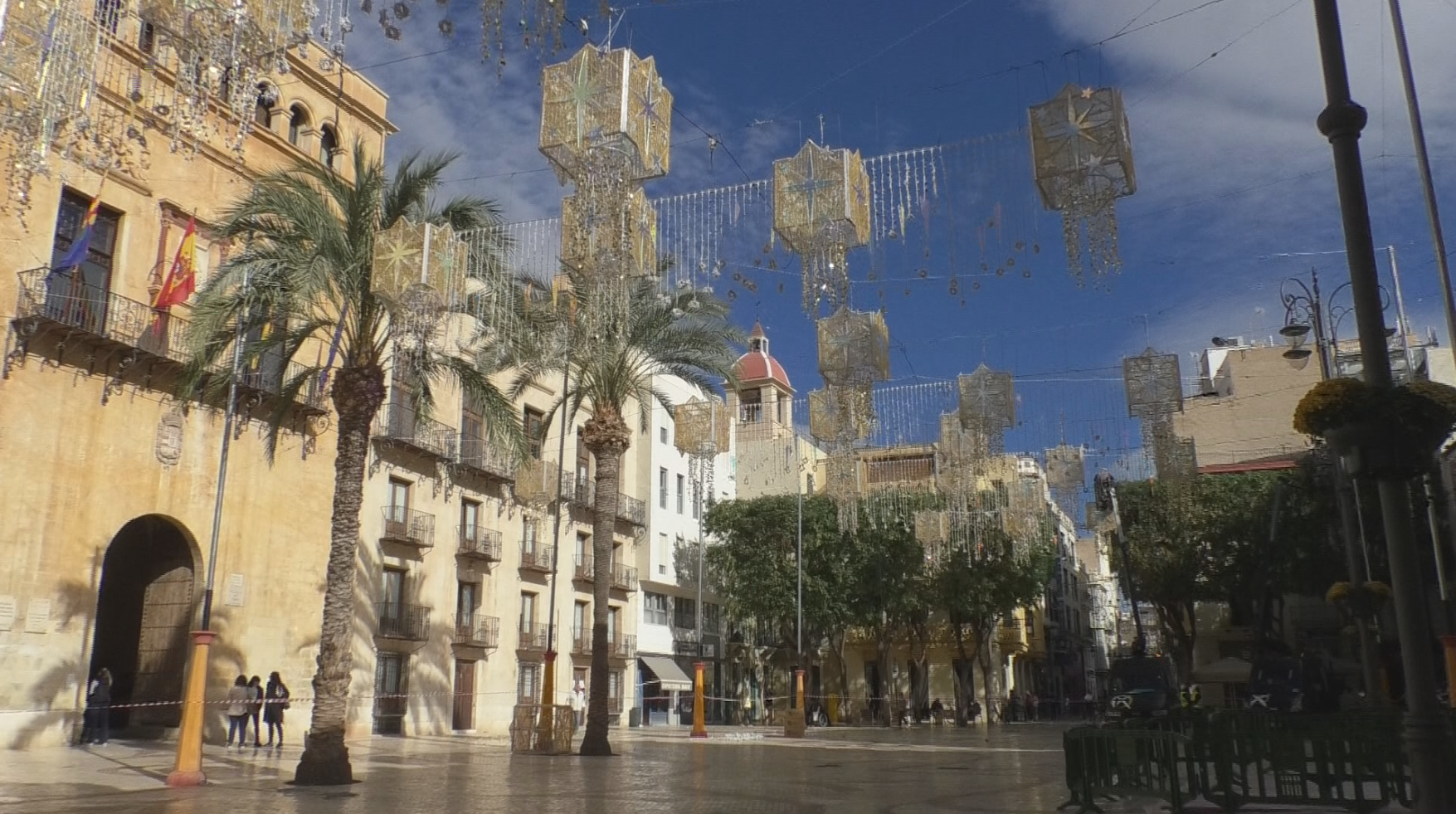 Elche se prepara para la época navideña con los últimos detalles en la plaza de Baix. En este caso, se ha apostado por una iluminación en forma de cubo que se extiende entre las palmeras que se encuentran presentes en este espacio, por un valor total de 70.000 euros, Estas guirnaldas cuentan con unos colgantes que dotan de mayor dinamismo a este alumbrado que se extenderá por toda la ciudad, siendo un total de 120 calles del centro y barrios las que serán iluminadas, conformando un total de 478 arcos de luz.