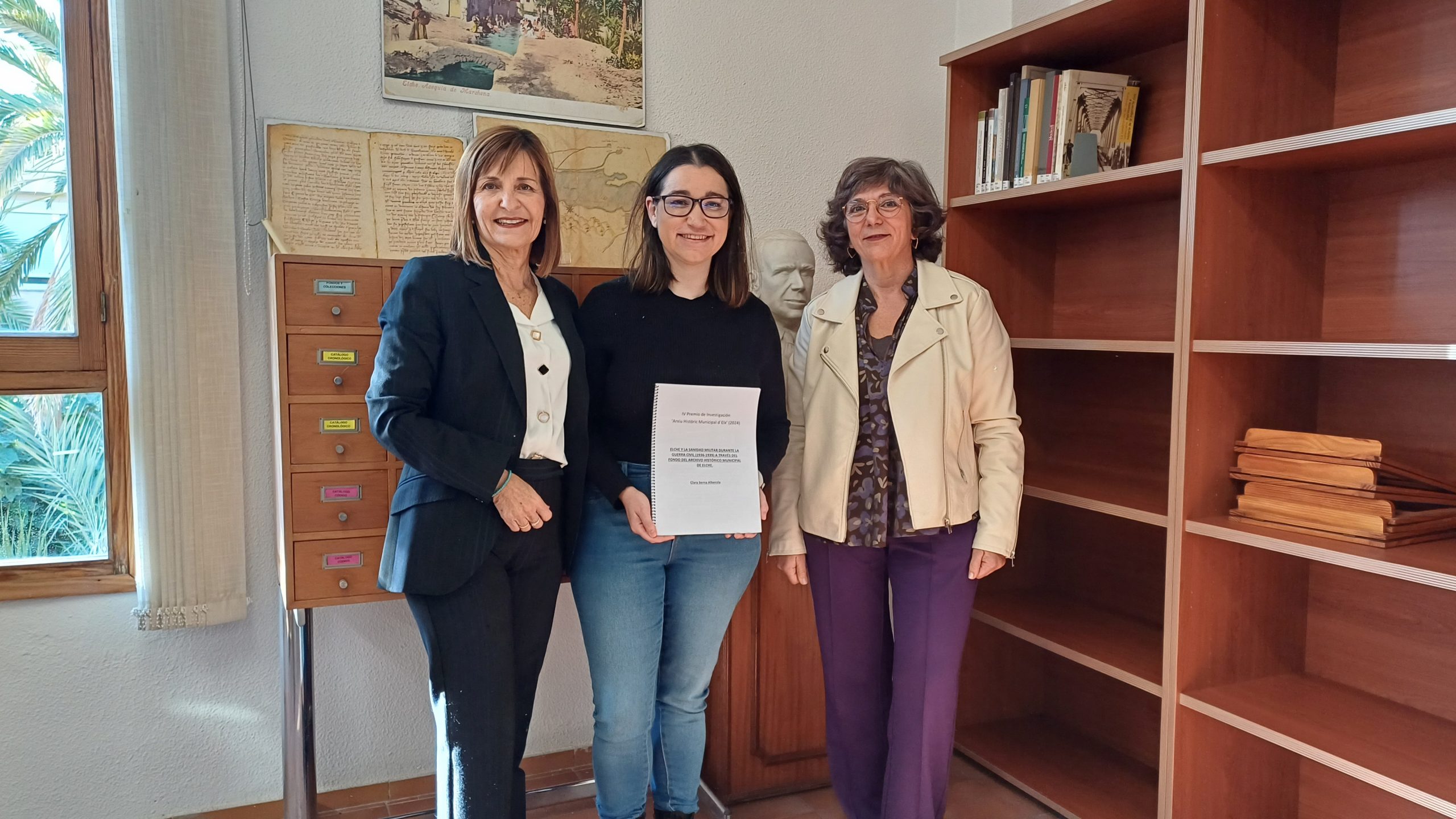 La ganadora del IV Premio de Investigación Archivo Histórico Municipal de Elche, Clara Serna Alberola, ha entregado hoy a la edil de Bibliotecas y Archivo, Mª Dolores Serna, el proyecto premiado que lleva por título “Elche y la sanidad militar durante la Guerra Civil a través del fondo del Archivo Histórico Municipal de Elche”. El objetivo del trabajo es el estudio de la infraestructura sanitaria en Elche en el período de la Guerra Civil y qué papel ocupa dentro de un ámbito geográfico mayor.