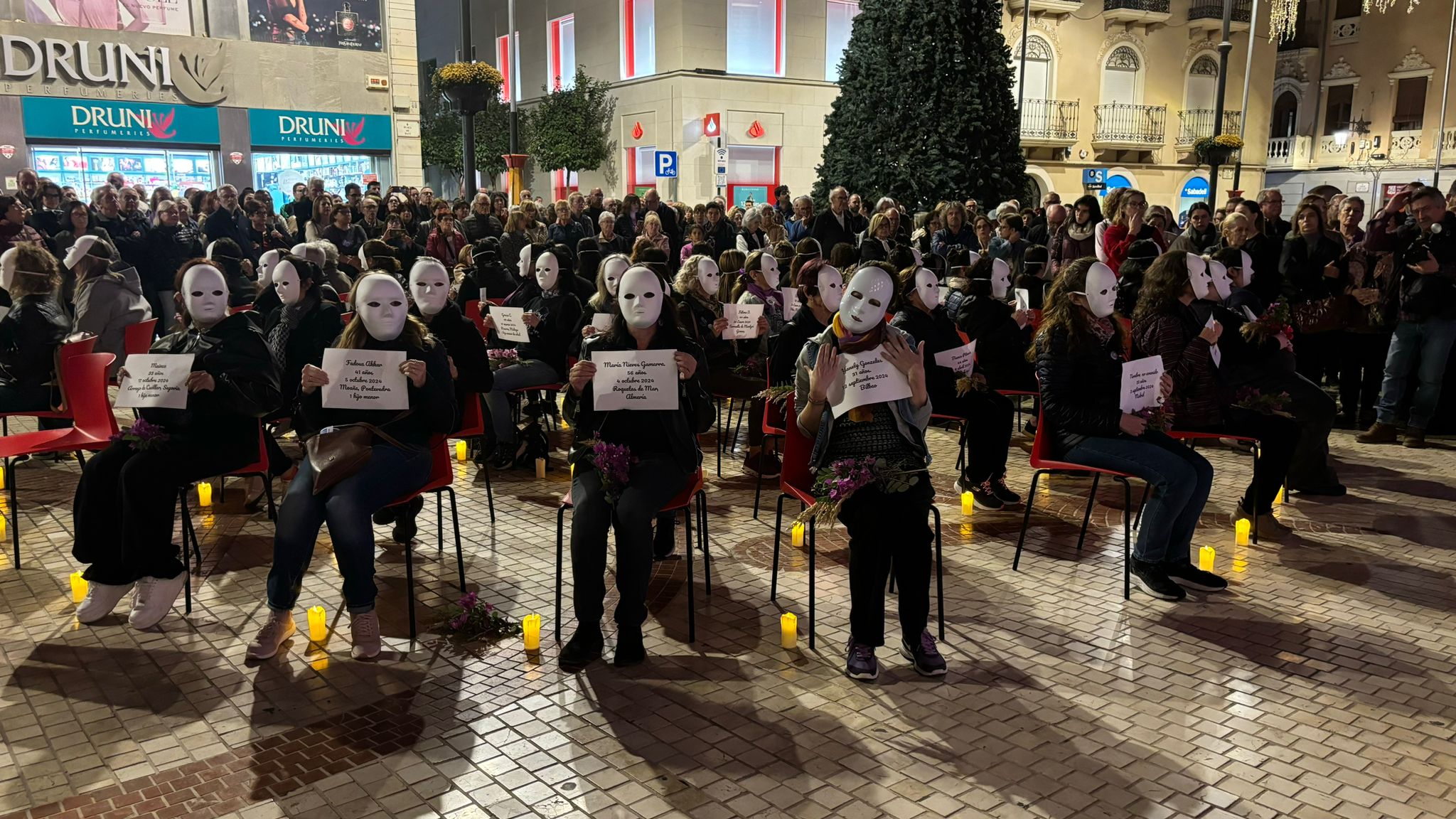 La coordinadora feminista de Elche, integrada por colectivos asociaciones y mujeres feministas convocó un acto en la plaza de Baix donde se leyeron los nombres de las 42 mujeres asesinadas en lo que llevamos de año a manos de sus parejas y exparejas. También hubo mención para los huérfanos que dejan estos asesinatos y las víctimas de violencia vicaria. El acto estuvo conducido por la periodista Mayte Vilaseca y el manifiesto fue leído por el periodista Mario Abril y la estudiante Lucía Andreu Bleda.