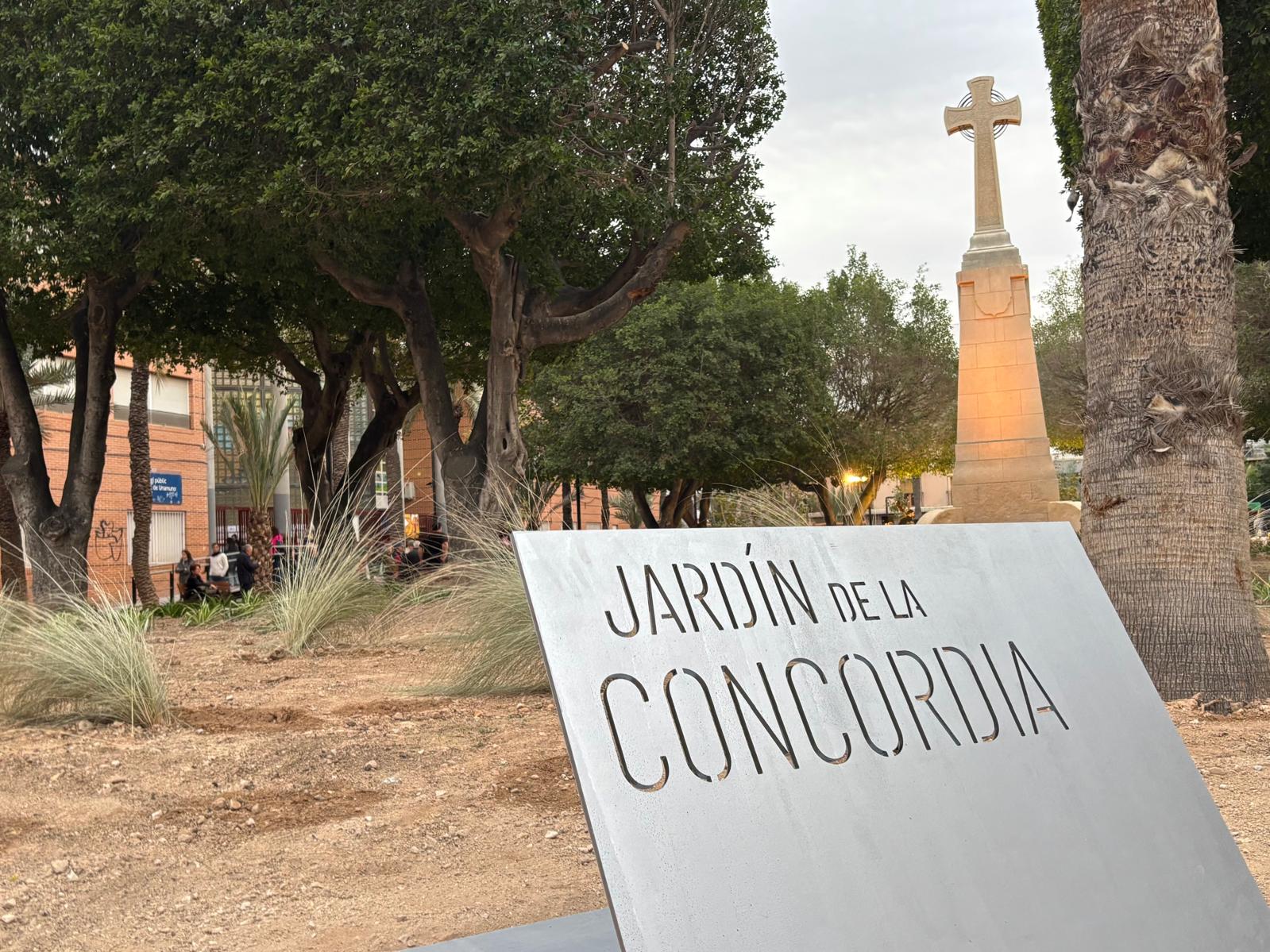 El renombrado como Jardín de la Concordia, hasta ahora plaza del Paseo de Germanías, se ha inaugurado esta tarde con la presencia de numerosos ilicitanos e ilicitanas que no han querido perderse este acto después de meses de retraso para la apertura del espacio. La renovada zona cuenta ahora con más espacios verdes, se han recuperado los refugios de la Guerra Civil para hacerlos visitables y se ha conservado la cruz de los caídos que se ha resaltado sobre un parterre que la aísla del resto del jardín. Además, se ha instalado una imagen del primer exalcalde de Elche, el socialista Ramón Pastor, como homenaje permanente y como argumento para reforzar el concepto de “concordia” que el actual gobierno de Partido Popular y Vox quiere dar al espacio.
