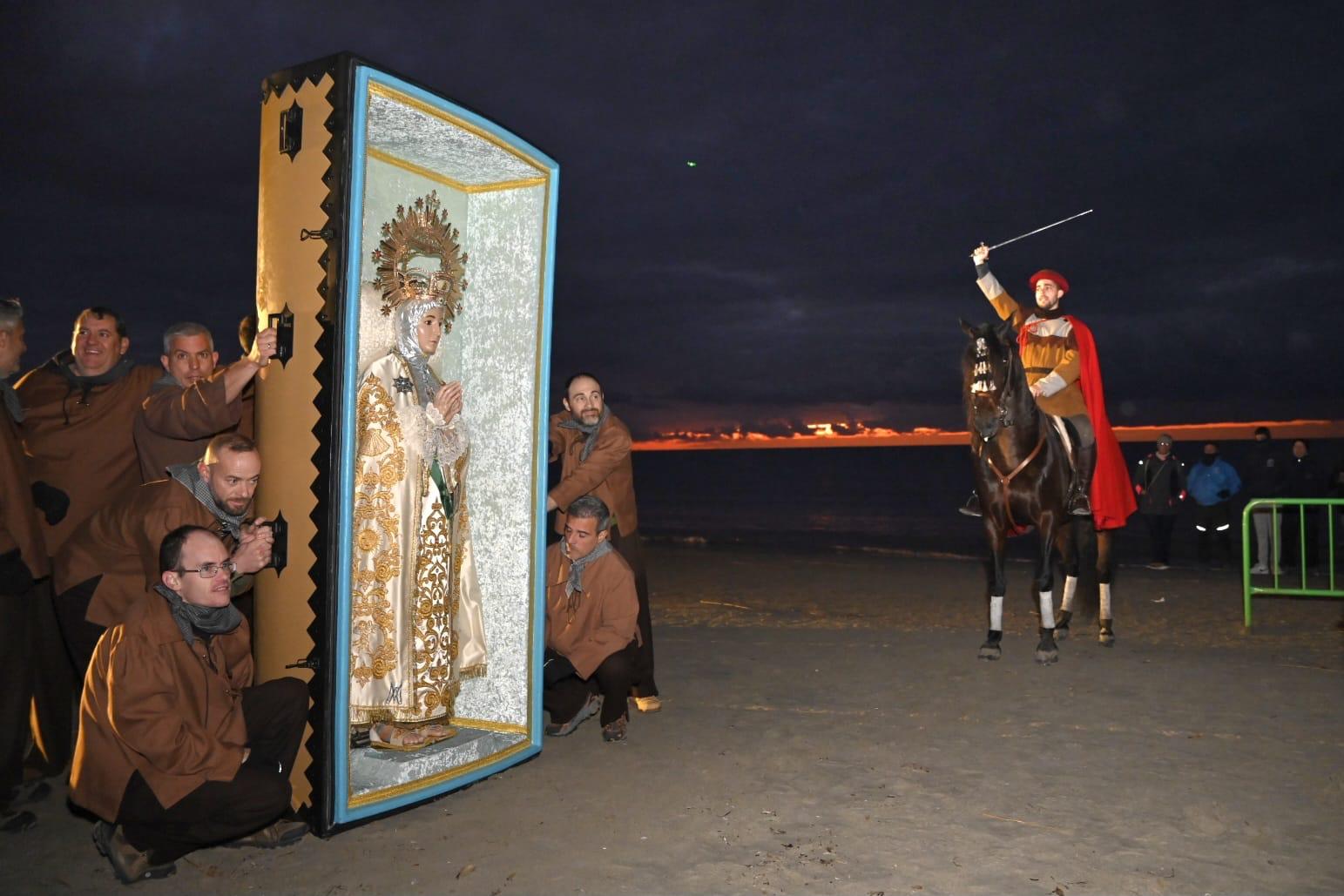 Como cada 28 de diciembre, Elche ha conmemorado el hallazgo de la imagen de la patrona, la Virgen de la Asunción en la playa del Tamarit, a cargo del guardacostas Francesc Cantó. Pasadas las 7 de la mañana se iniciaba la representación en la que Iván Pomares, en el papel de Cantó, se alzaba a lomos de su caballo Ilice y escenificaba el descubrimiento del arca mostrando la imagen a las miles de personas que esperaban en la playa al grito de ¡Visca la Mare de Déu!, ¡Visca la nostra patrona! !Viva la Reina del Tamarit!