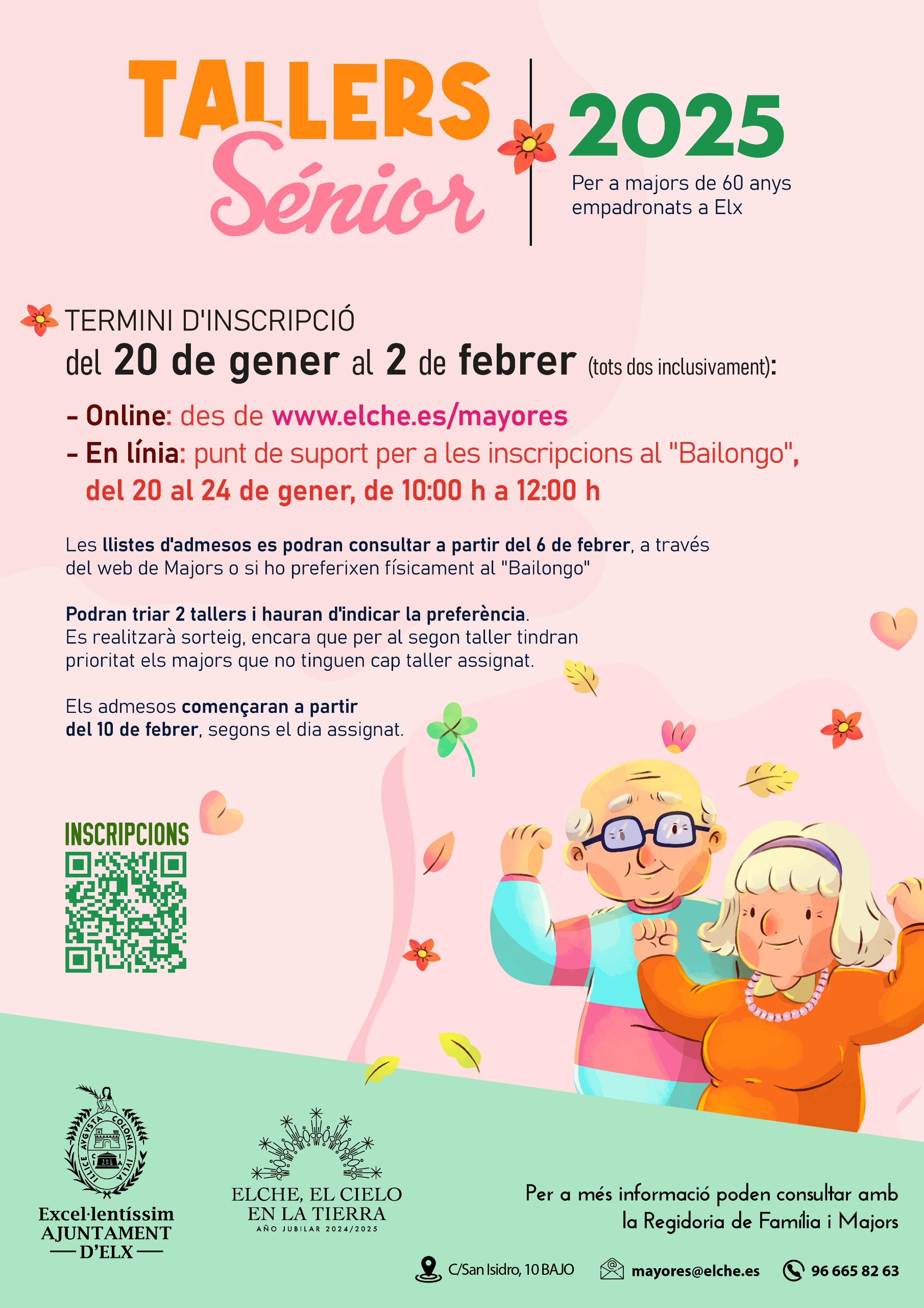 Desde la concejalía de Mayores se ha anunciado los nuevos talleres senior 2025 dirigidos a la población ilicitana mayor de 60 años. Los cursos se llevarán a cabo en el Centro Cívico del Candalix, ‘El Bailongo’ y en la Casa del Mayor.