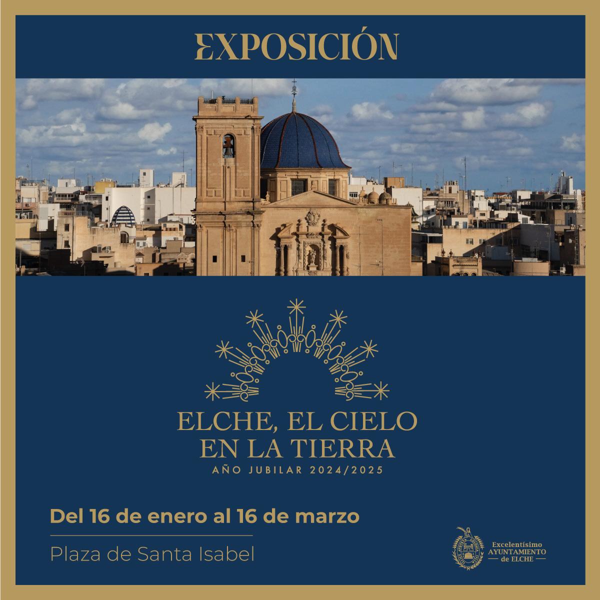 Esta tarde a las 18.00h tendrá lugar la inauguración de la exposición ‘Elche, el Cielo en la Tierra’, en la Plaza de Santa Isabel, con motivo del Año Jubilar, y estará disponible hasta el 16 de marzo.