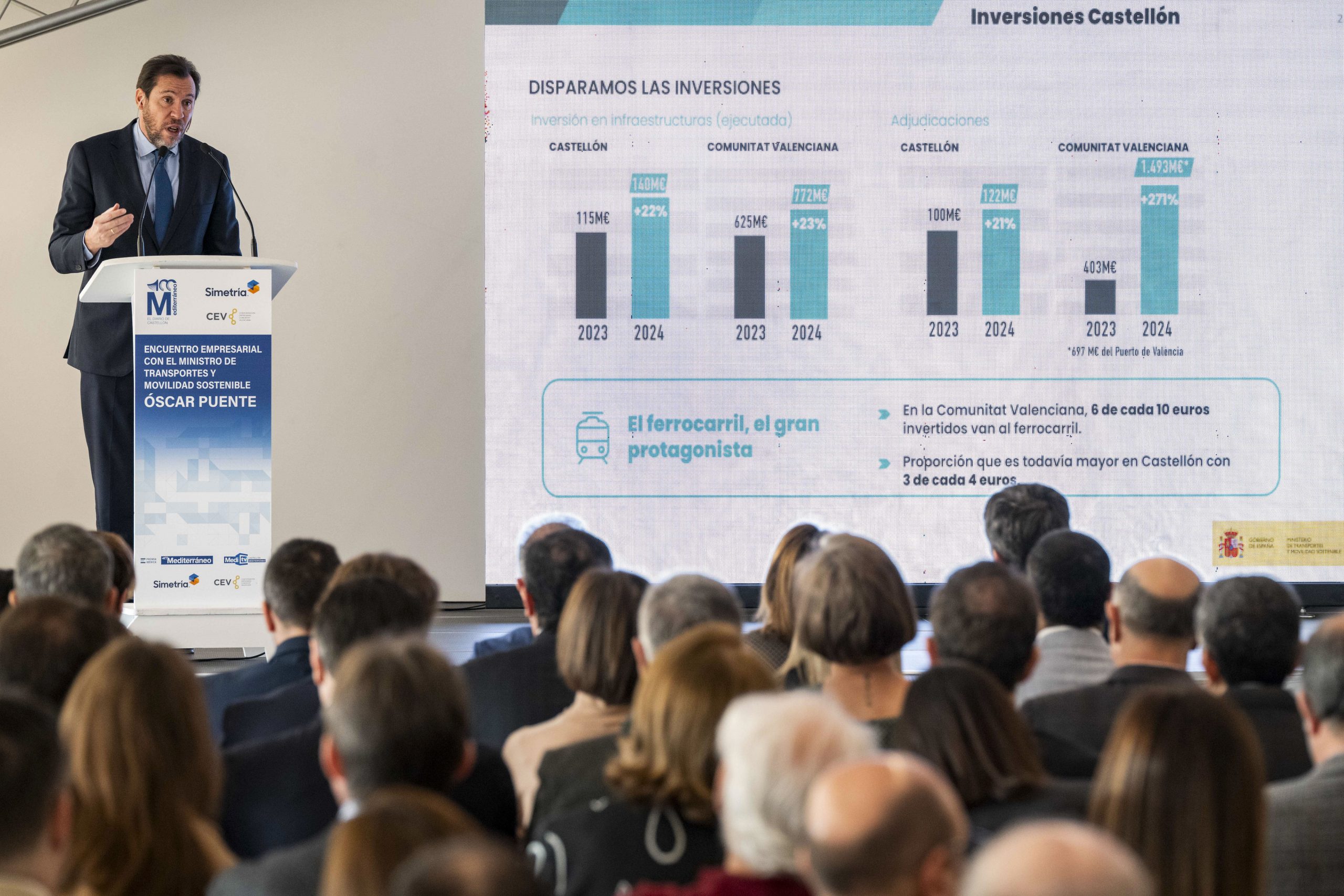 El “AVE regional valenciano” se pondrá en marcha a través de las obras que se están realizando para impulsar el Corredor Mediterráneo en la provincia de Castellón, en cuyo despliegue se han invertido la cifra récord de 1.306 millones de euros sólo en 2024. Además, ha explicado que en Alicante hace pocas semanas fueron adjudicadas las obras para crear seis nuevas vías en ancho internacional, con previsión de que estén listas a mitad de 2026.