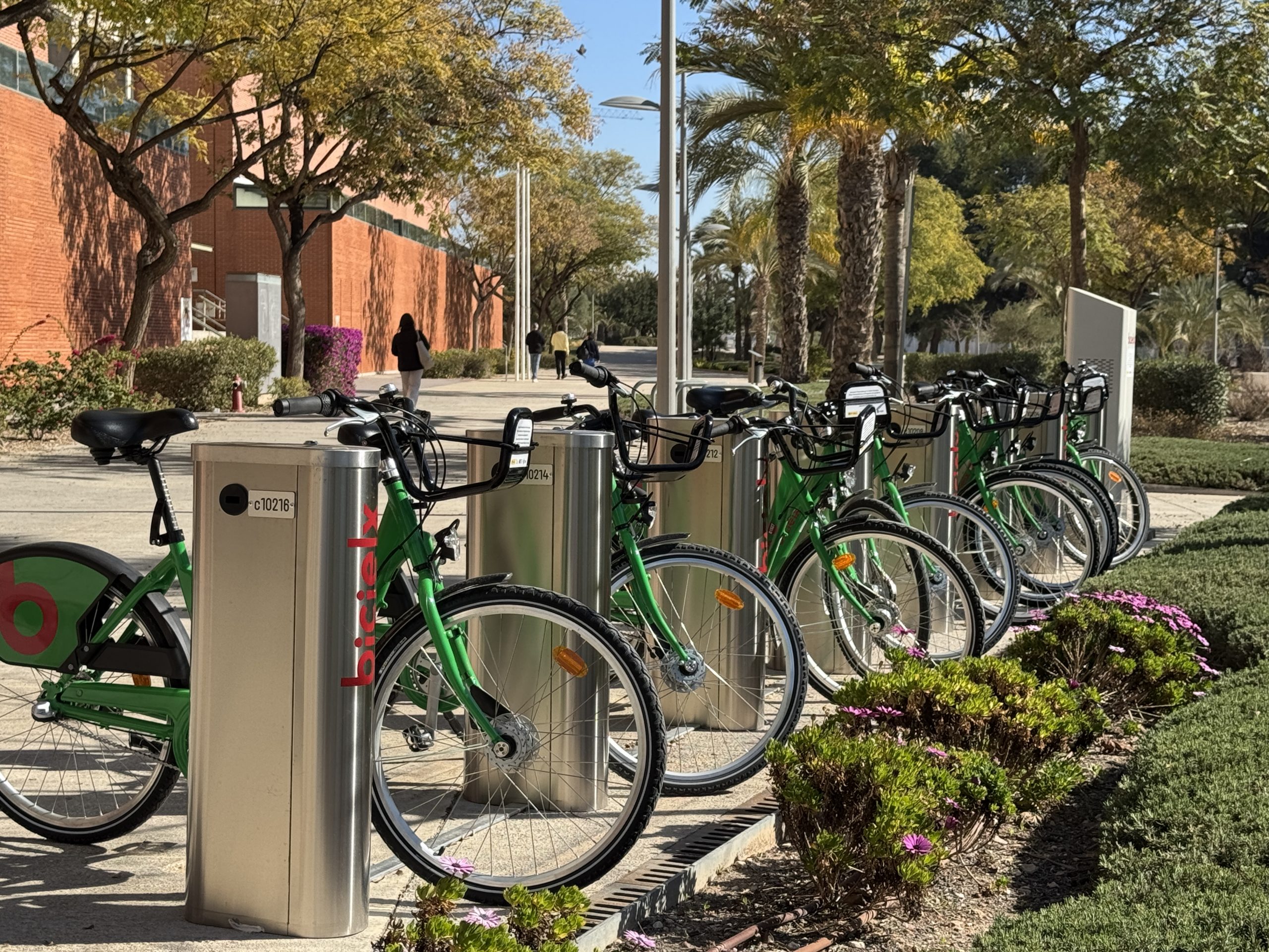 El campus de Elche de la Universidad Miguel Hernández abre cuatro nuevas estaciones del servicio público de alquiler de bicicletas del Ayuntamiento de Elche, Bicielx. En concreto, las nuevas estaciones se han ubicado estratégicamente en las proximidades de los edificios Arenals, Altabix, La Galia y Altet, que se suman a las ya existentes frente al edificio Rectorado y Consejo Social, junto al edificio Torrevaíllo, frente a la Escuela Oficial de Idiomas y en el Palau dels Esports de la UMH.