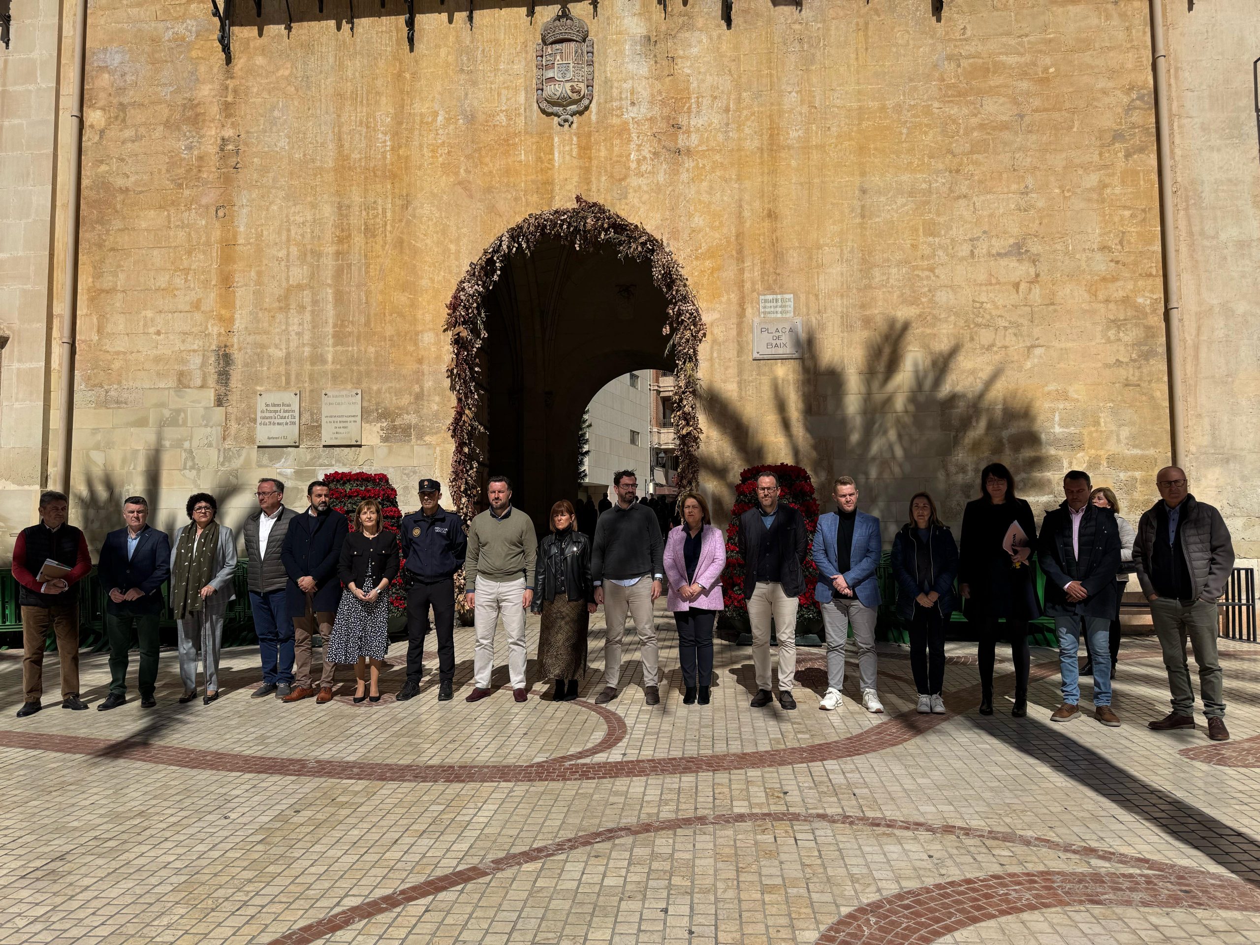 La concentración ha tenido lugar a las 12.00 horas en la Plaza de Baix, donde han acudido representantes de los distintos grupos políticos de la ciudad, miembros de la corporación municipal y empleados públicos.