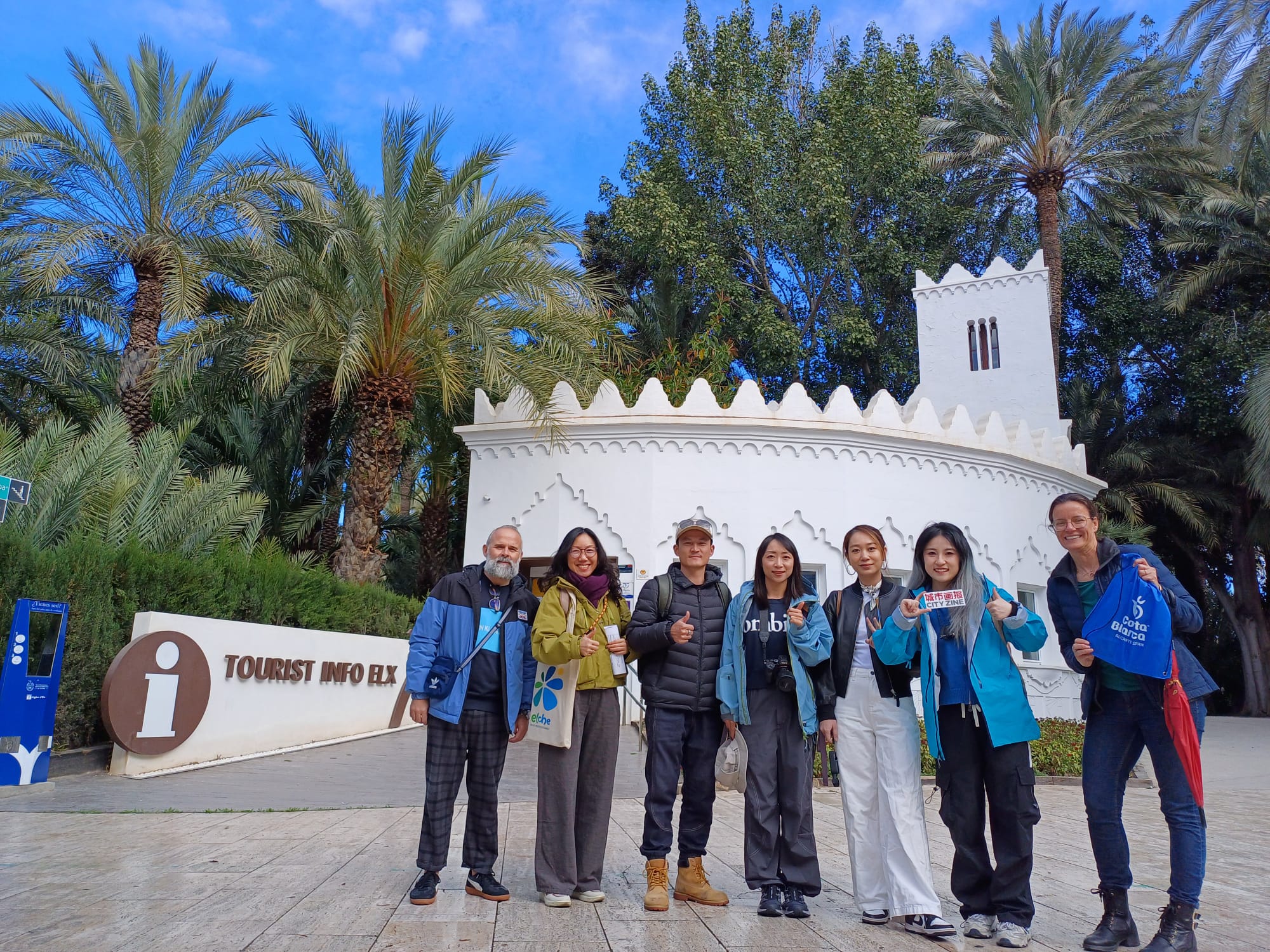 Durante su estancia han visitado el centro histórico y el Palmeral de Elche, donde han hecho hincapié en el Museo del Palmeral. Allí han conocido la artesanía de la palma blanca, la elaboración de ramos y palmas para el Domingo de Ramos o el oficio de palmerero o palmerera, además del Jardín Huerto del Cura. También han podido conocer de primera mano la oferta hotelera de la ciudad, ya que durante toda la estancia en la provincia han pernoctado en un hotel ilicitano.