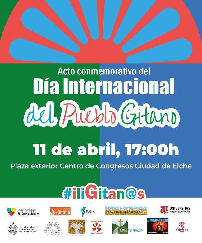 El Ayuntamiento de Elche, a través de la Concejalía de Acción Social, ha organizado junto con las entidades participantes en la Mesa Local del Pueblo Gitano una serie de actos con motivo del Día Internacional de la Comunidad Gitana que se celebra cada 8 de abril.