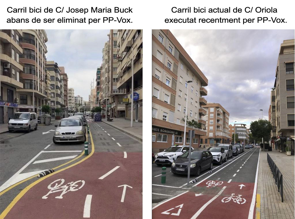 Margalló-Ecologistes en Acció y Comisiones Obreras Vinalopó-Vega Baja han solicitado a través de la OMAC que el ayuntamiento recupere el carril bici de Josep Maria Buck, que el actual ejecutivo local de PP y Vox desmanteló apenas tres meses después su toma de posesión.