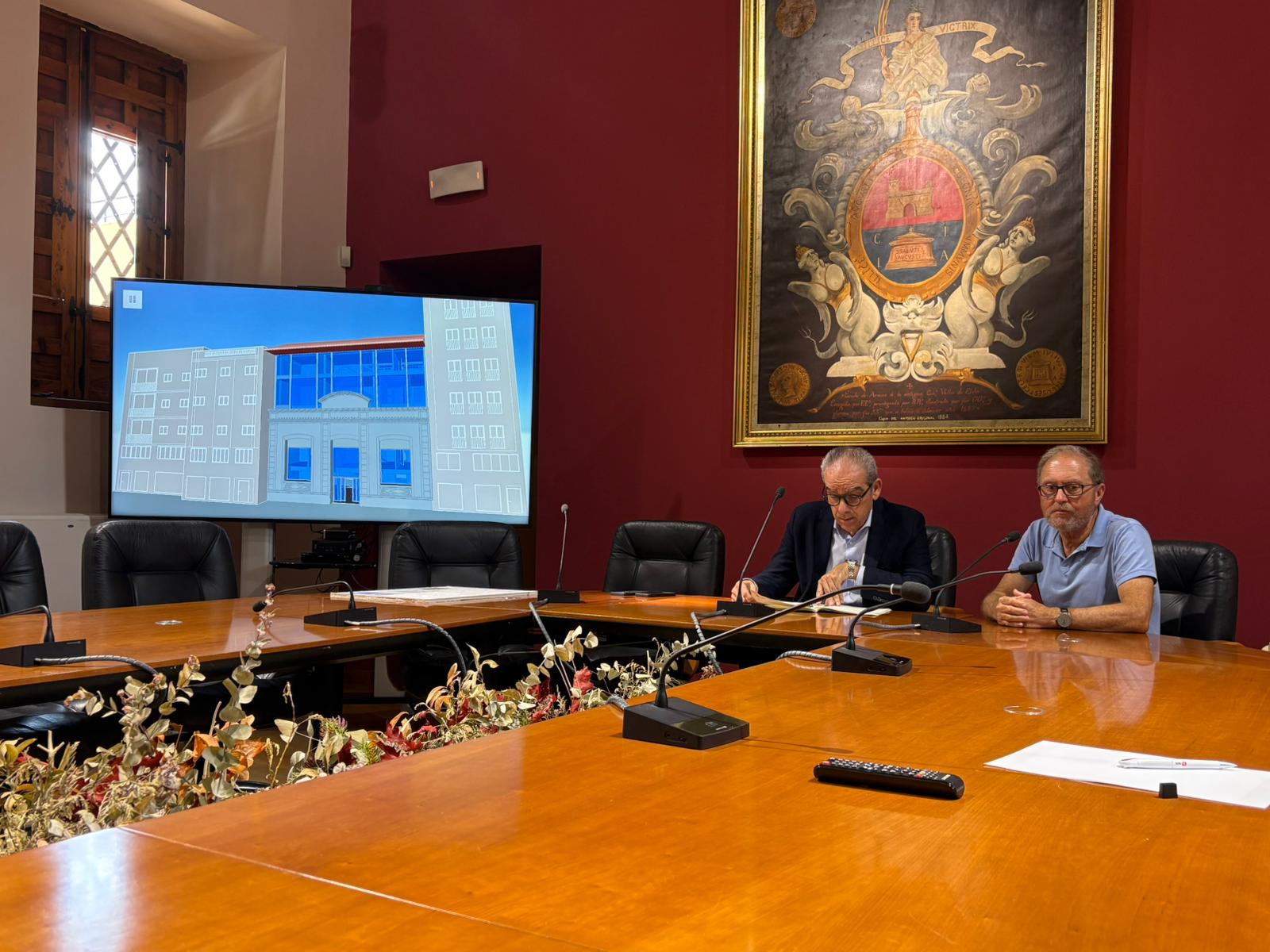 El concejal de Estrategia Municipal, Francisco Soler acompañado del Arquitecto Municipal, Julio Sagasta ha presentado el proyecto básico sobre el edificio Nuevo Riegos El Progreso, después de que el Ayuntamiento asumiera su compra por un millón de euros meses atrás.