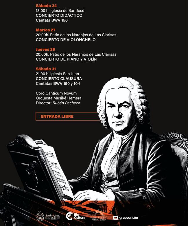 El Ayuntamiento de Elche, a través de la concejalía de Cultura, ha organizado la XV edición de la Semana Bach, que comenzará este sábado 24 de mayo y se prolongará hasta el día 31.